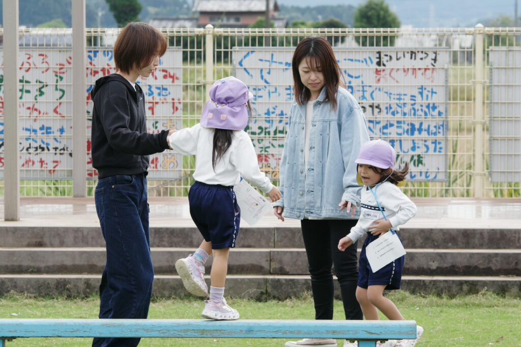 親子で手形を押して・・スタート!今年は天候が不安定だったので、園庭でウォークラリーに変更しました。