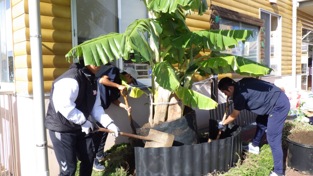 あんりのシンボル「バナナの木」の植え替えをしてくれました!さすが野球部、力仕事はまかせて~🍌