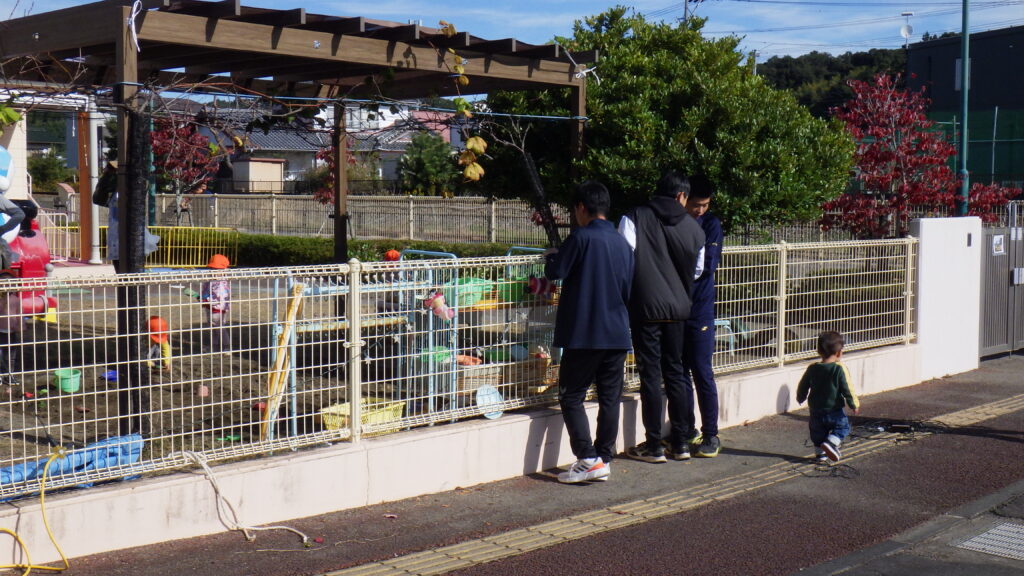 子ども達は、お兄さん・お姉さんが一緒に遊んでくれてとても満足。園の環境も綺麗に整えて下さり、本当にありがとうございました。木村監督を含め、野球部の皆さん、ボランティアの皆さん。また、あんりに遊びに来てくださいね!